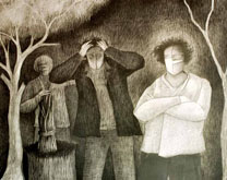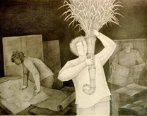 Tinta, carbón y sanguina sobre papel, 77 x 57 cm, 2008